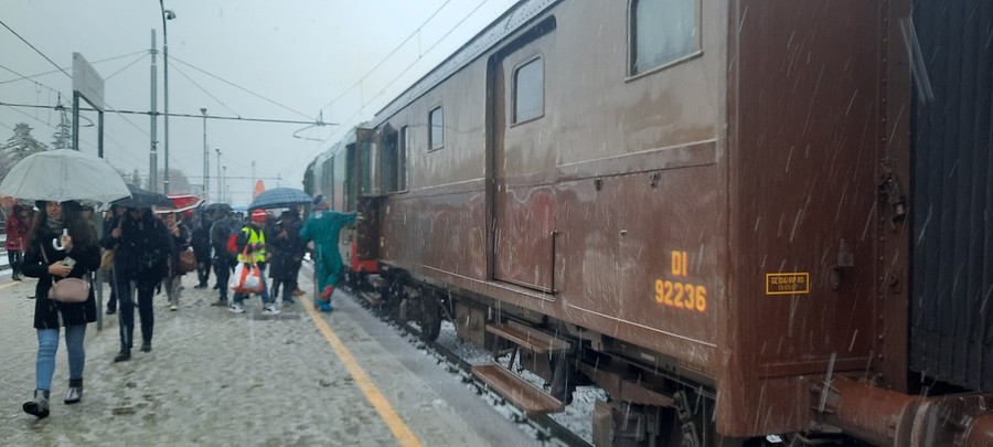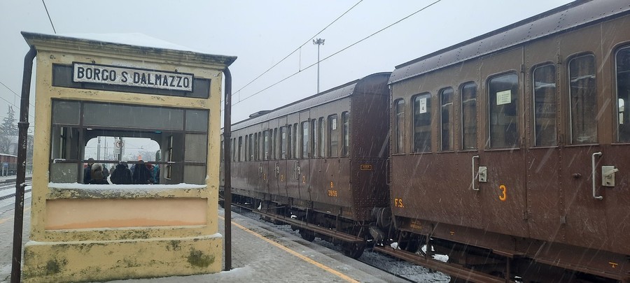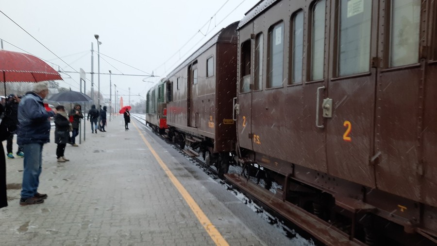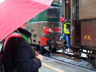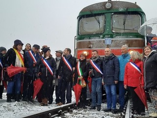 Lo scorso sabato 3 dicembre, l'arrivo del treno storico partito da Ventimiglia trainato da una locomotiva operativa dal 1979. I vagoni invece sono quelli che erano già presenti all'inaugurazione della linea ferroviaria Cuneo-Nizza nel 1928. Il convoglio è arrivato in perfetto orario, alle 10.40, dopo essersi fermato in tutte le stazioni della Valle Roya e della Valle Vermenagna.