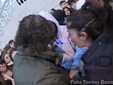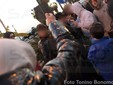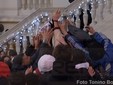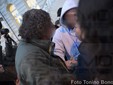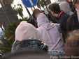 Il fatto è avvenuto ieri pomeriggio quando il rapper ha deciso di autografarne una delle sue e gettarla tra la folla. Intervento di un bodyguard tra strattonate e insulti
