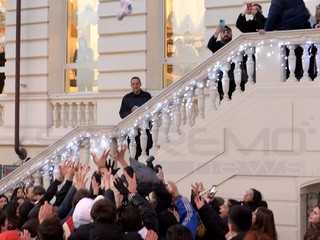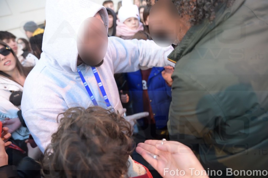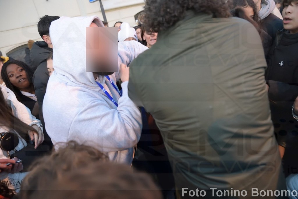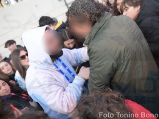 Il fatto è avvenuto ieri pomeriggio quando il rapper ha deciso di autografarne una delle sue e gettarla tra la folla. Intervento di un bodyguard tra strattonate e insulti