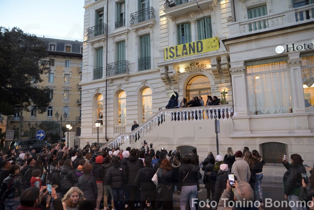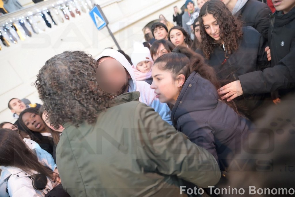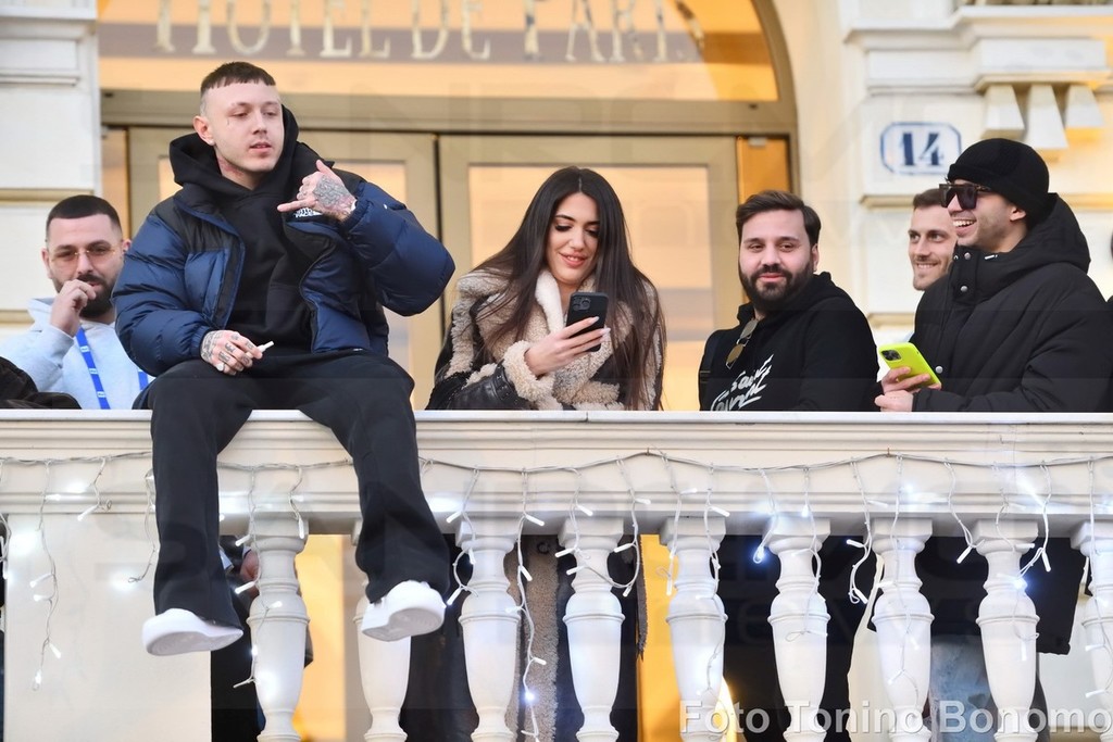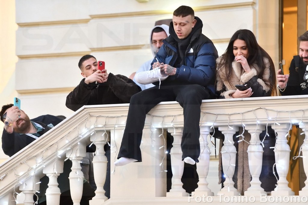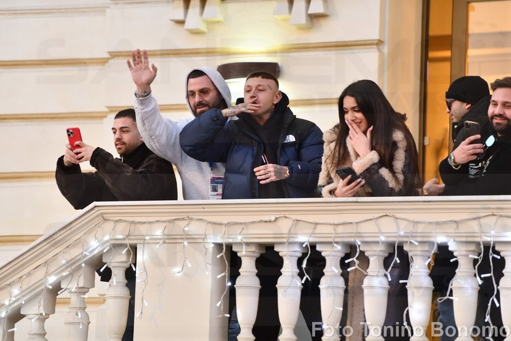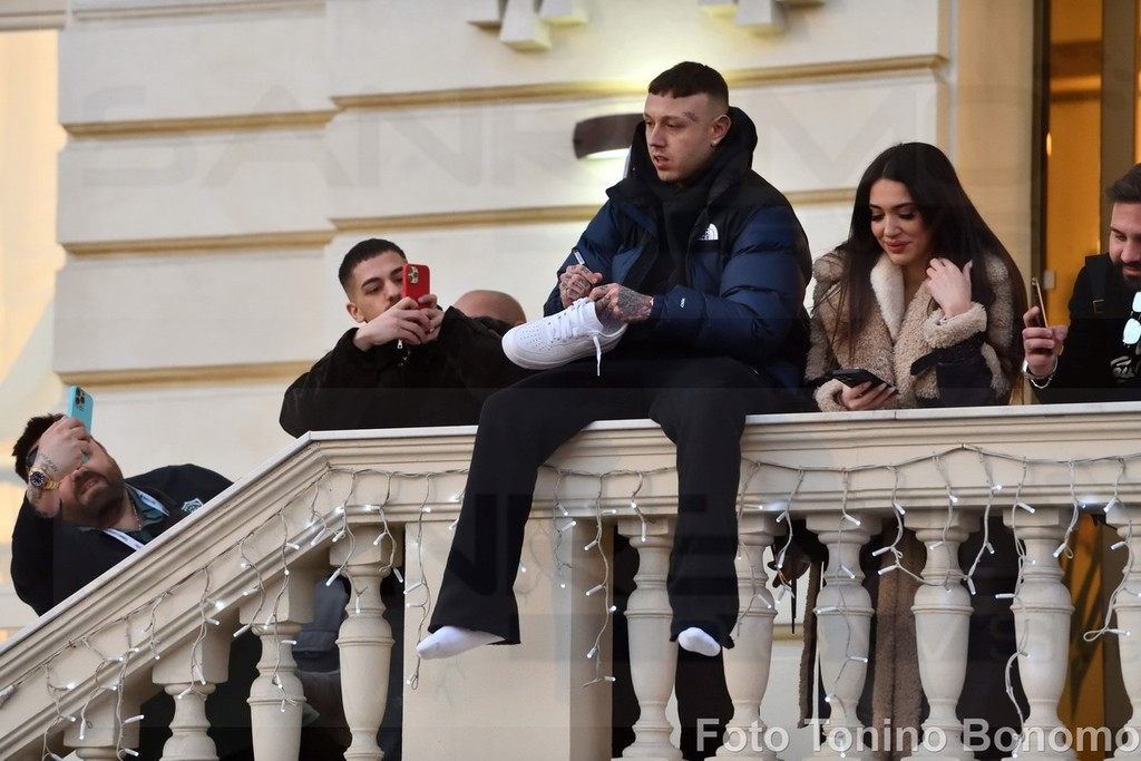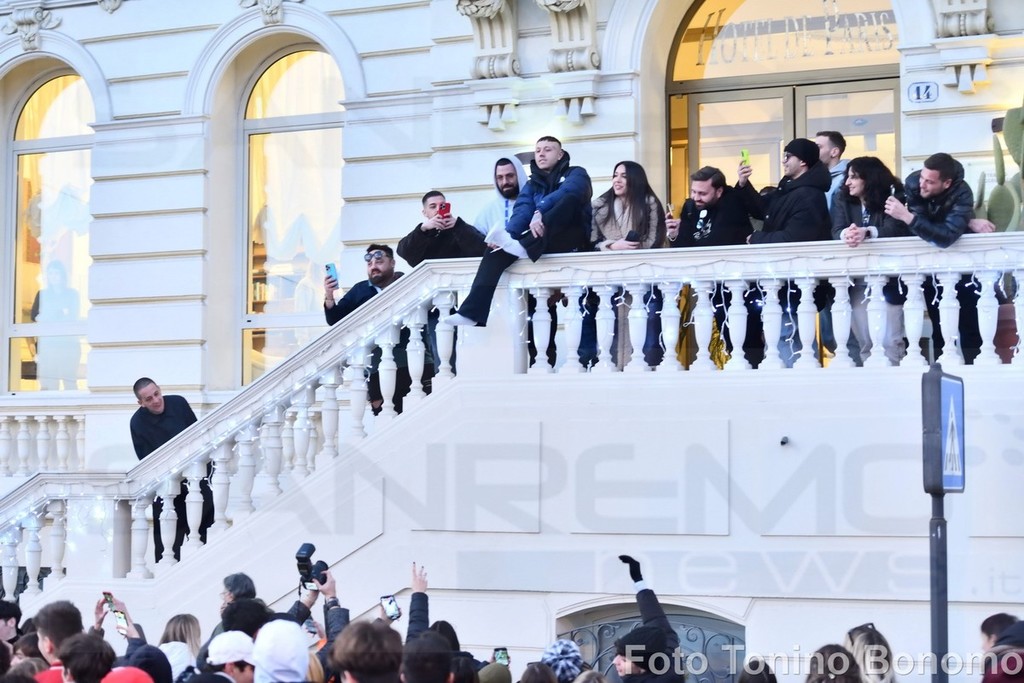 Sanremo: per una scarpa di Lazza follia di fronte all'hotel, tanti giovani per conquistare il 'cimelio' (Foto)