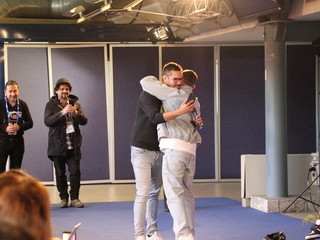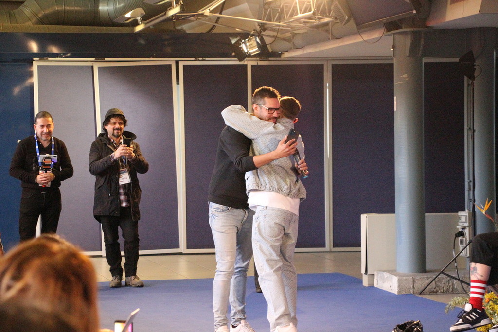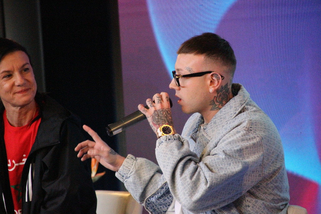 Non sono mancati i riferimenti calcistici: Lazza non ha mai fatto mistero di essere un grande tifoso milanista, e alcuni dei giornalisti presenti in sala hanno approfittato per scherzare sull’argomento, fino all’abbraccio con un collega della stessa ‘fede’.