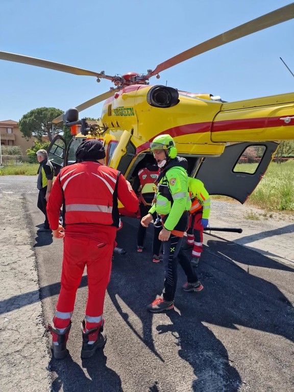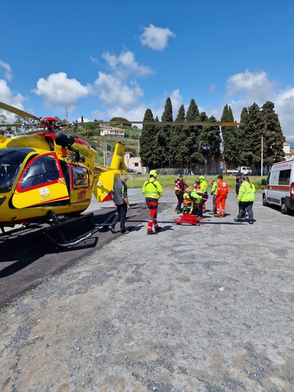 Dopo aver fatto scendere il medico, il velivolo ha atteso il ferito nel piazzale del cimitero di Diano