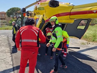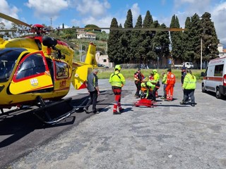 Dopo aver fatto scendere il medico, il velivolo ha atteso il ferito nel piazzale del cimitero di Diano