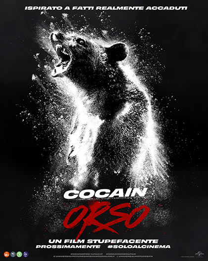 - COCAINORSO (vm 14) – ore 19.00 - 21.15 – di Elizabeth Banks - con Keri Russell, Margo Martindale, Ray Liotta, Alden Ehrenreich, Jesse Tyler Ferguson - Thriller - "A Knoxville, in Tennesse, nel 1985, un trafficante di droga con addosso diversi chili di cocaina viene trovato morto, precipitato dal suo aereo per la mancata apertura del paracadute. A indagare è un ispettore locale, il quale capisce che dietro il caso c'è il boss di Saint Louis Syd White, che a sua volta ha mandato a recuperare la merce rimasta lo scagnozzo Daveed e suo figlio Eddie, ancora in lutto per la morte della moglie. Quello che nessuno sa è che la droga, caduta nella Chattahoochee-Oconee National Forest, è stata ingerita da un'orsa nera, che ora si aggira ferocissima e famelica. A scoprirlo loro malgrado sono una coppia di turisti, un ragazzino e una ragazzina che hanno marinato la scuola, la madre di quest'ultima, una ranger ignara e vari altri malcapitati. Chi riuscirà a recuperare la droga? E chi sopravviverà all'orsa in crisi d'astinenza?...”