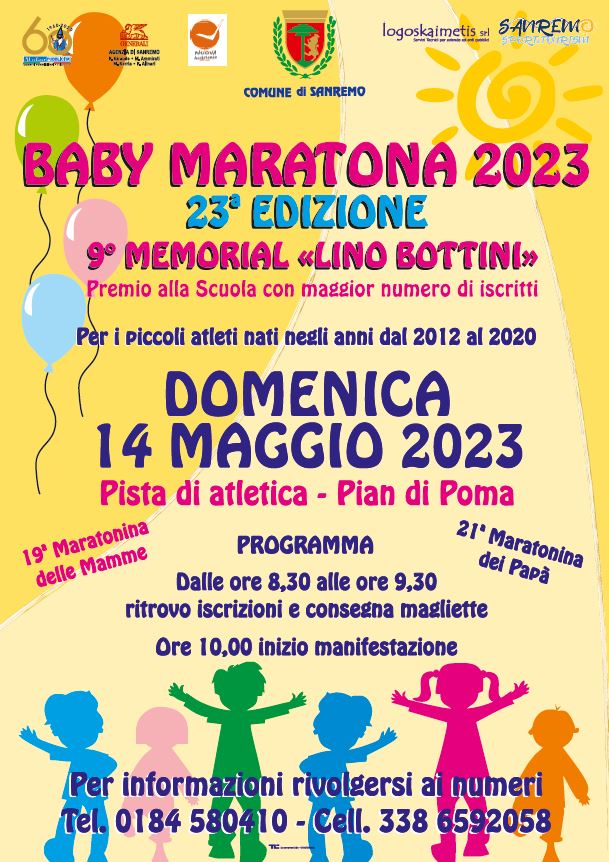 10.00. Partenza della sua 23esima edizione della Baby Maratona rivolta ai bimbi nati tra il 2012 e il 2020. Pista d’atletica a Pian di Poma (dalle 8.30 alle 9.30 ritrovo iscrizioni e consegna magliette), info 338 6592058 (locandina)