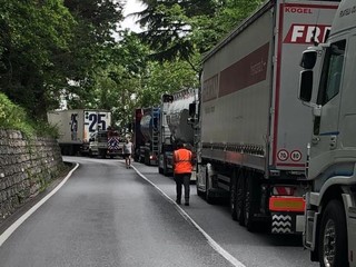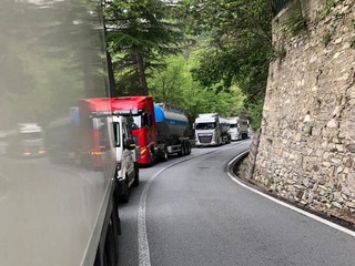 Tir incastrati al Colle di Nava: traffico in tilt sulla 28 e residenti infuriati (foto)