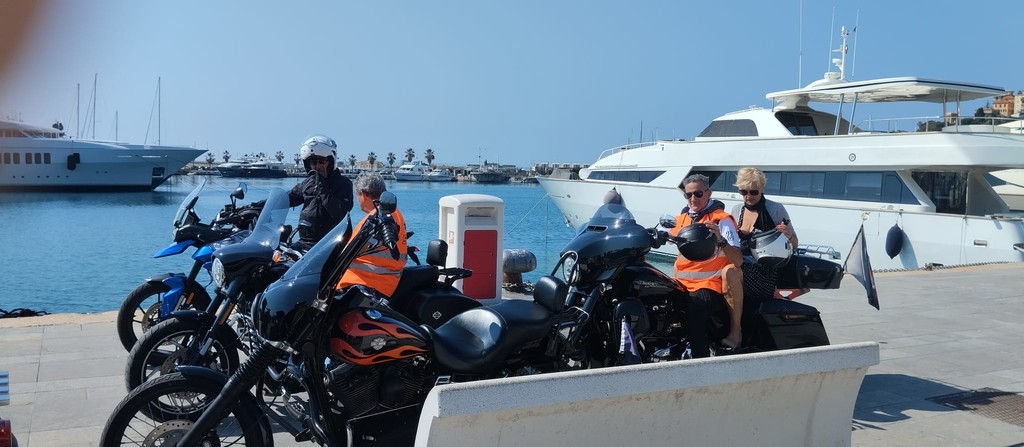 Poco dopo le 10 da calata Anselmi è partito il raid su un percorso di circa 70 chilometri nell'entroterra per ammirare la vista mare dal famoso Passo del Ginestro, importante strada sede delle prove speciali dei famosi rally, per poi scendere al Colle San Bartolomeo dove si possono ammirare bellissimi oliveti e vigneti di importanti aziende agricole.