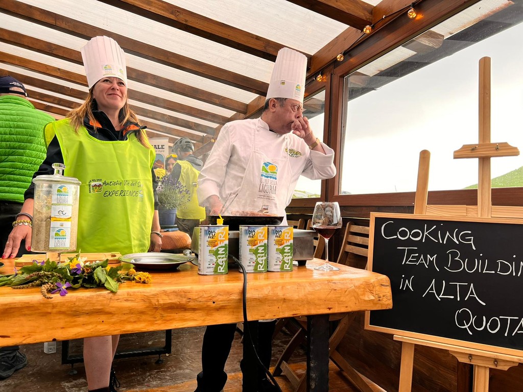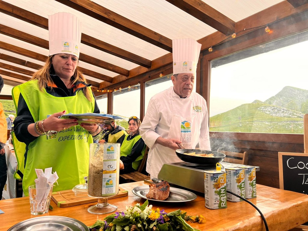 Tutto è iniziato dall’educational promosso da Franco Laureri, presso il Rifugio “La Terza” di Monesi. Un evento che è stata l’occasione per un gruppo di escursionisti, a cavallo, piedi e in mountain bike, di partecipare al cooking team building in alta quota diretto dal maestro di cucina Renato Grasso che si è avvalso dell'olio di produzione Raineri di Chiusanico.