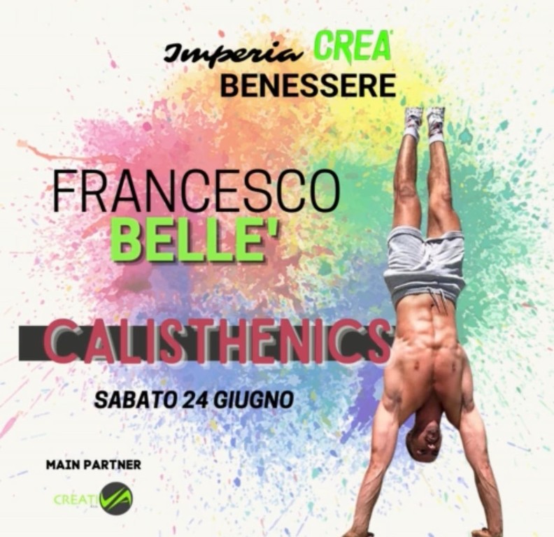 Ma non finisce qua, Imperia CREA Benessere infatti è un evento dedicato al Fitness in ogni sua forma, anche al Calisthenics: una disciplina che aumenta la forza e l'armonia del corpo. Presentore d'eccezione Francesco Bellè, atleta ed istruttore di Calisthenics certificato burningate.