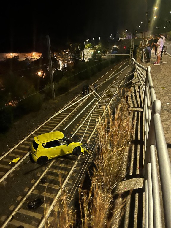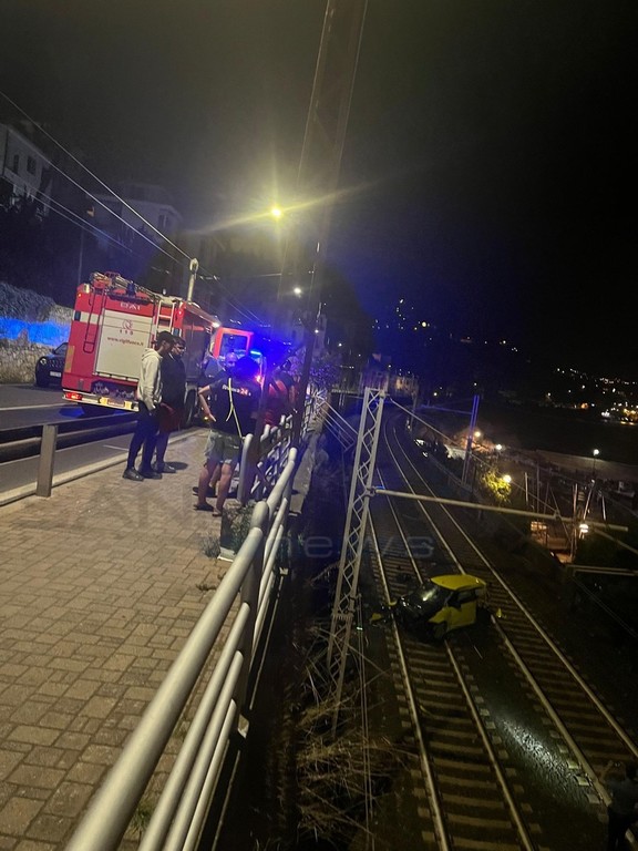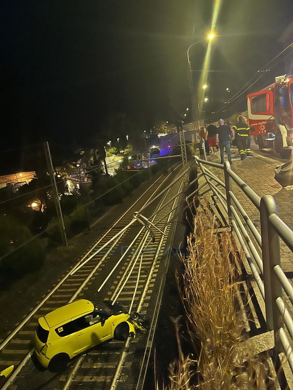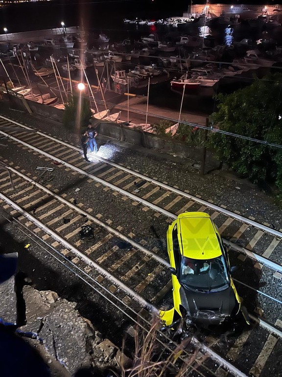 Bordighera: auto sfonda parapetto e finisce sui binari della ferrovia, stop ai treni per alcune ore