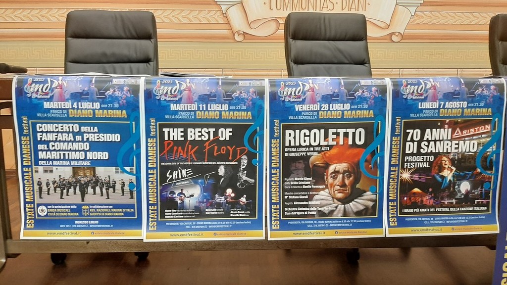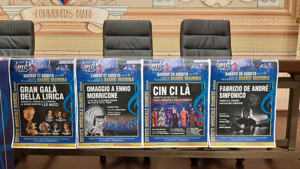 Ben otto sono quest'anno gli spettacoli, tre nel mese di luglio e cinque in agosto, tutti nel suggestivo teatro all'aperto di Villa Scarsella. Lo spettacolo di apertura, unico ad ingresso gratuito, vedrà protagonista, grazie ai buoni uffici del Gruppo di Diano Marina dell'Associazione Nazionale Marinai d'Italia, la Fanfara del Distretto Marittimo Nord della Marina Militare, il cui concerto sarà preceduto da alcune esecuzioni della Banda Musicale Città di Diano Marina, diretta da Nadia Spagnolo The Best of Pink Floyd è invece il titolo della seconda serata, fissata per martedì 11 luglio, quando sul palco saliranno la band Shine, con un concerto che intende celebrare il 50ennale dell'album The dark side of the moon. Per l'occasione, insieme a Mauro Vero (voce solista e chitarre), Mauro Germinario (voce solista e basso), Maurizio Carobene (tastiere e cori), Dario Laino (chitarre) e Ivan Voarino (batteria), si esibiranno la vocalist Alessia Porani e Marcello Manzo al sax. Due gli appuntamenti dedicati alla lirica: l'opera il Rigoletto di Giuseppe Verdi (28 luglio) e il Gran Galà del 17 agosto, durante il quale il fenomenale baritono Leo Nucci riceverà il Premio Città di Diano Marina, alla carriera. Spazio anche per l'operetta, con una delle più amate, Cin Ci Là (24 agosto). Rigoletto e Cin Ci Là verranno proposte in forma completa e con spettacolari scenografie e artisti degni dei principali palcoscenici internazionali. A completare il programma sono la serata dedicata al Festival di Sanremo (7 agosto) con Progetto Festival (Angela Vicedomini, Alessio Briano, Artan Selishta e Andrea Balestrieri), il sempre. apprezzato Omaggio a Ennio Morricone (21 agosto), con l'ensemble Le Muse, la vocalist Angelica Depaoli e Andrea Albertini al pianoforte. Gran finale, con il tributo a Fabrizio De André (26 agosto), con l'ensemble Dodecacellos e Andrea Filippi come voce solista. Il costo dei biglietti varia tra i 15 ed i 28 euro, con riduzione (10 euro) per gli under 14.
