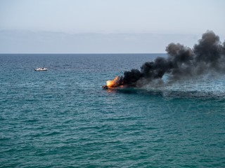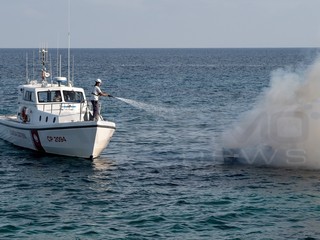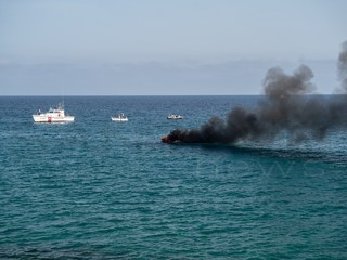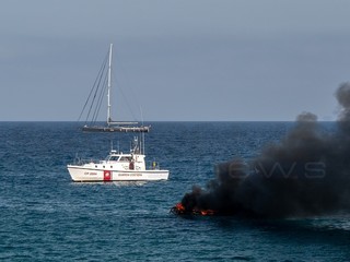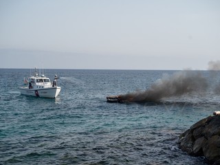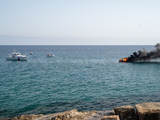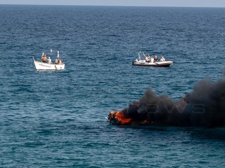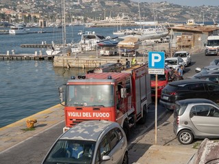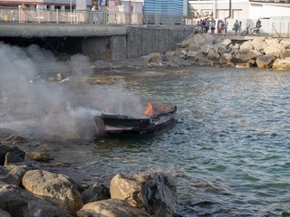 Sanremo: barca in fiamme davanti a porto vecchio, due persone a bordo (foto e video)