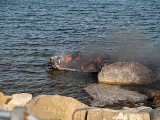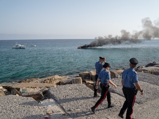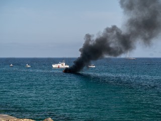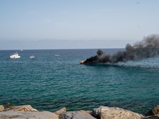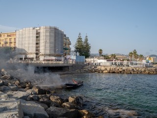 Una spessa colonna di fumo nero si è alzata sulla città. In azione Capitaneria, Vigili del Fuoco, 118 e forze dell'ordine