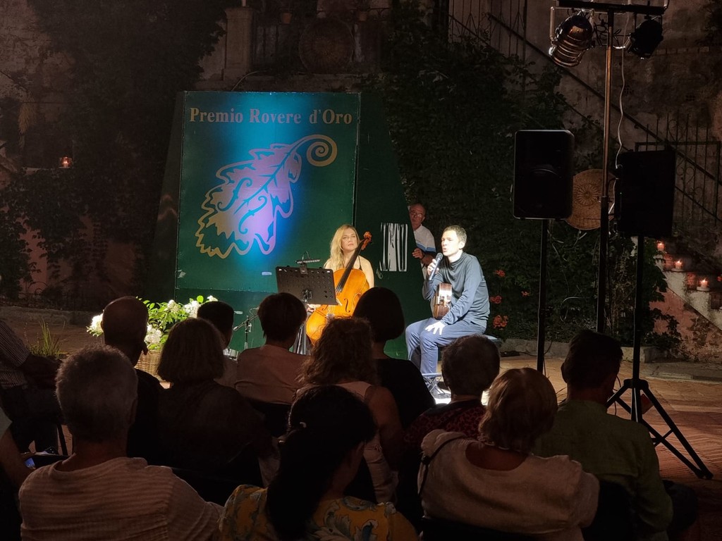 Emozionante serata “Aspettando il Rovere-Concerto in ricordo di Rita Romani Arimondo”, ieri sera a San Bartolomeo al Mare. Nel ricordo della fondatrice e per decenni animatrice e sostenitrice del Rovere d’Oro, il Direttore artistico Christian Lavernier ha presentato un interessantissimo spettacolo, "Quantum One", un viaggio attraverso l'Universo, con Andrea Vettoretti (chitarra) e Riviera Lazeri (Violoncello), una sorta di poesia recitata all’unisono da voce, suoni e musica.