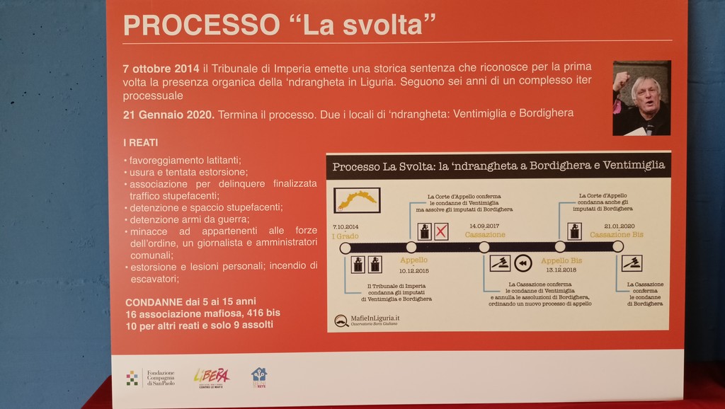 L’incontro si inserisce in un percorso promosso da Libera e Compagnia di San Paolo nell’ambito del progetto Beni in Rete per l’accompagnamento di istituzioni e terzo settore verso il riutilizzo sociale dei beni confiscati alla criminalità. Proprio in questo campo i risultati recenti, che sono stati presentati nel corso della serata, testimoniano la vitalità e le prospettive del contesto imperiese: dopo lo sgombero dello scorso autunno, per i beni confiscati al clan Pellegrino a Bordighera, si avvicina il ritorno alla collettività grazie al primo campo di volontariato e formazione, nell’ambito dell’iniziativa nazionale “E!state Liberi!”, fortemente sostenuto dal prefetto Valerio Massimo Romeo e dall'ANBSC, Agenzia Nazionale per i Beni Confiscati. "Il maltolto si trasforma in bene comune, attraverso la cooperazione di Stato, Magistratura, enti locali, cooperative e associazioni. Per molti volontari storici di Libera, un sogno che si realizza e una grande soddisfazione, ma anche il primo passo, oltre quello di Vallecrosia, verso l’effettivo reimpiego di molti beni confiscati nel Ponente: queste risorse possono trasformarsi in opportunità sociali, ricreative e culturali. Una vera e propria legalità in cammino, accanto alle persone e in direzione di una maggiore giustizia sociale" - ha commentato Maura Orengo, referente provinciale di Libera.