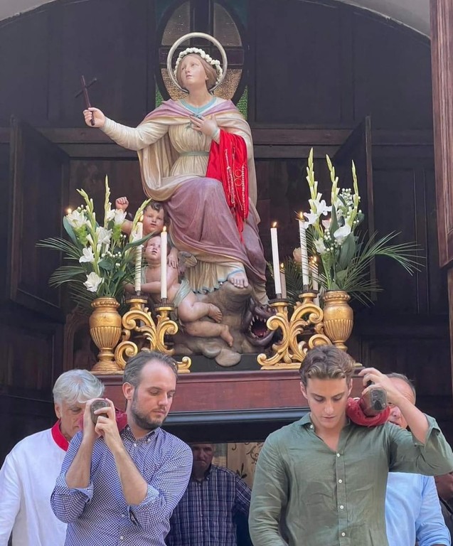 Al termine della Messa si è snodata la processione per le vie del paese con la partecipazione della Banda musicale città di Alassio diretta dal maestro Puerari, con la statua della patrona Margherita di Antiochia portata a spalle dai volontari.