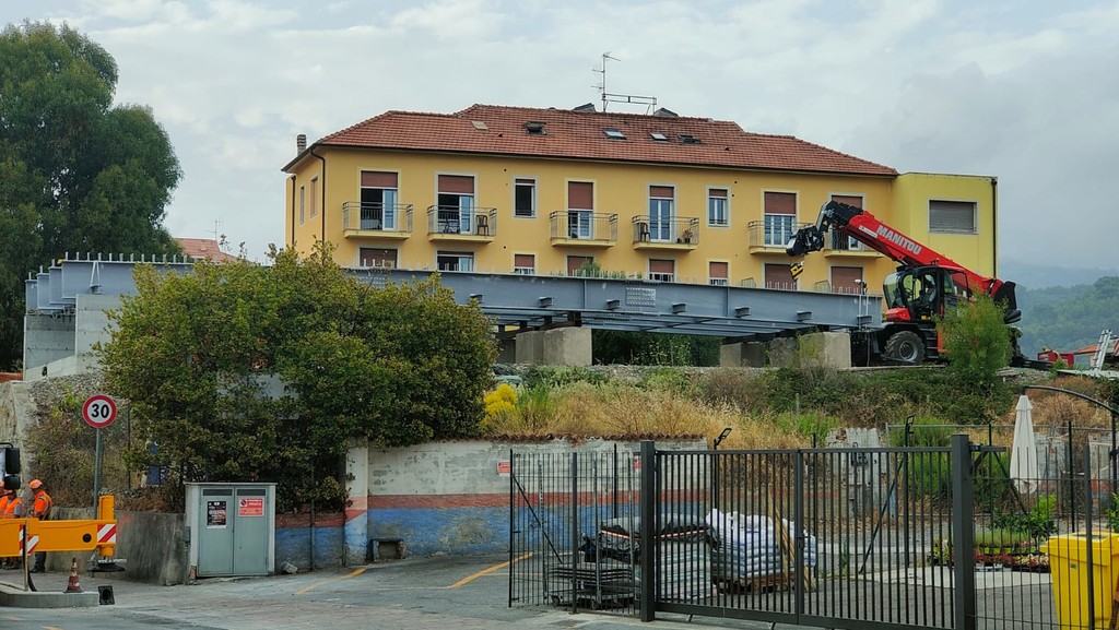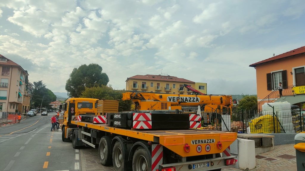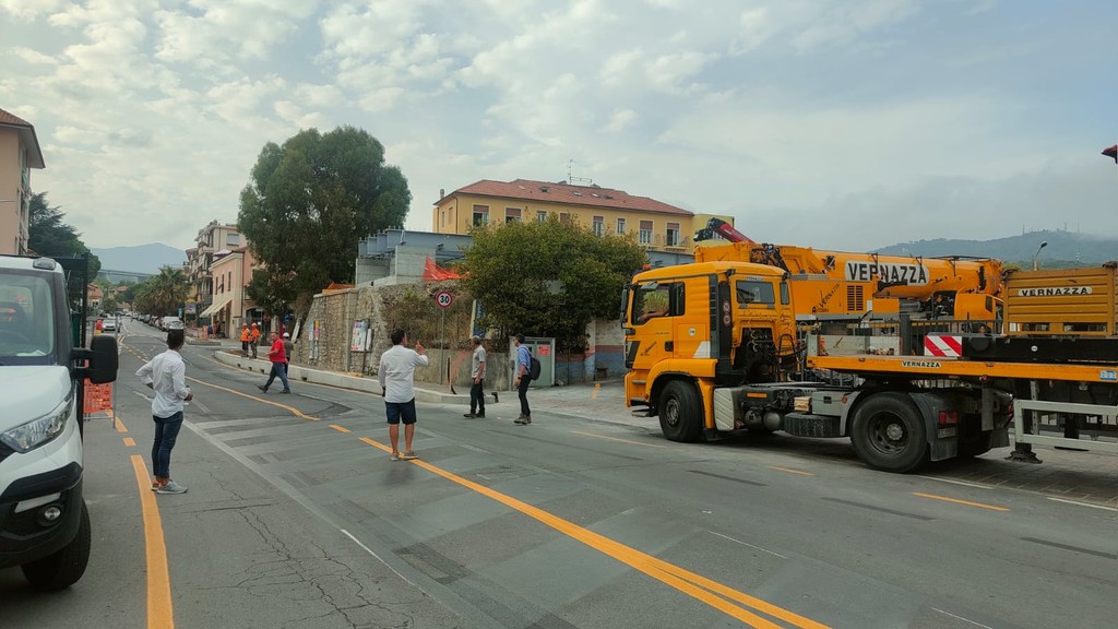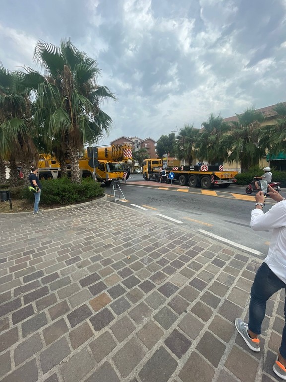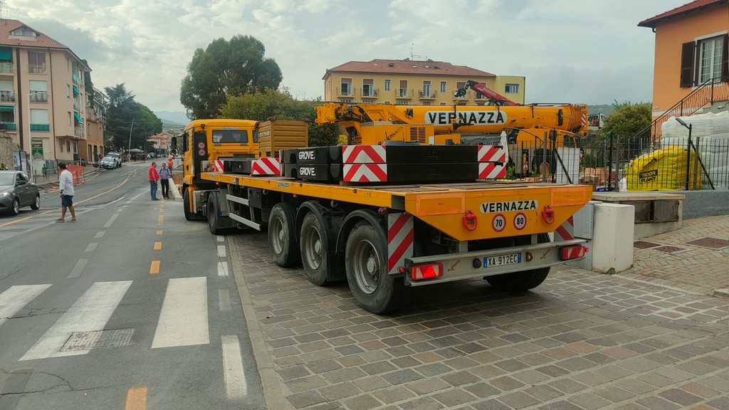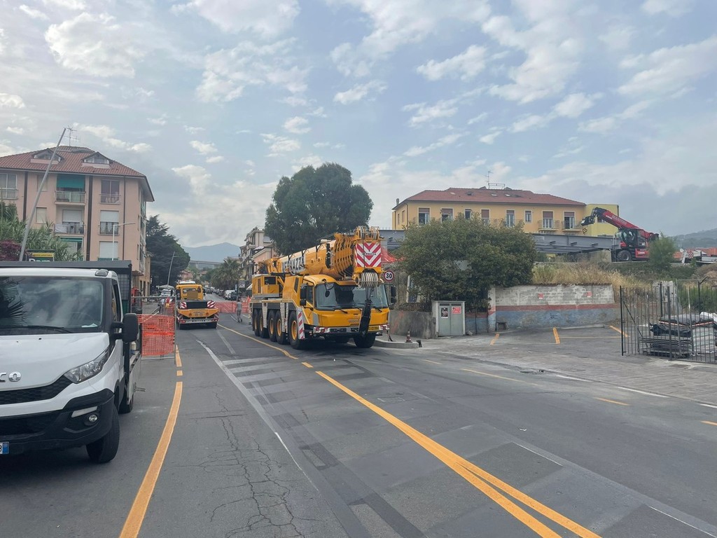Iniziate a San Bartolomeo al Mare le operazioni di posa del nuovo ponte di via Roma (foto e video)
