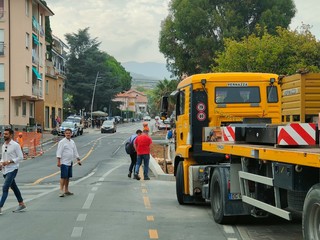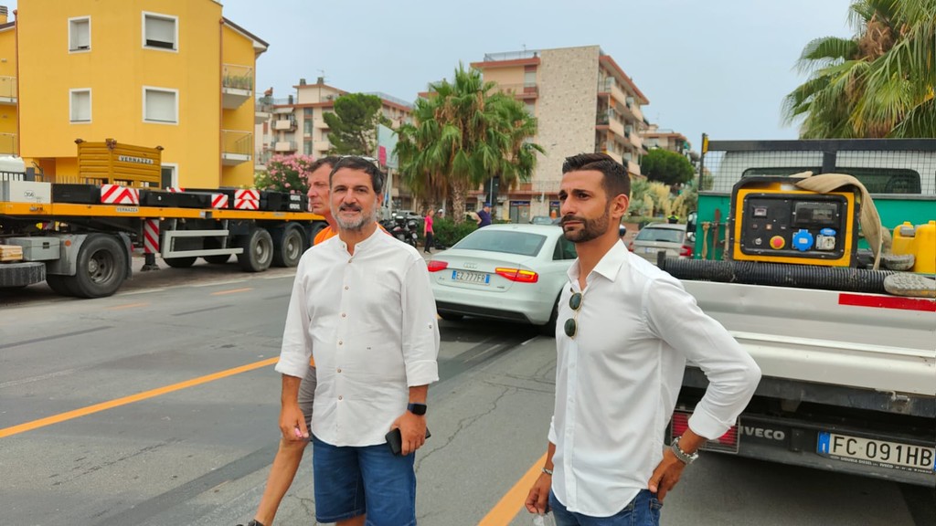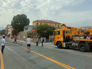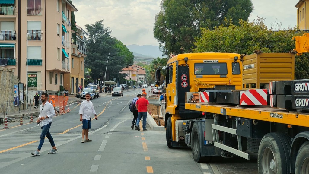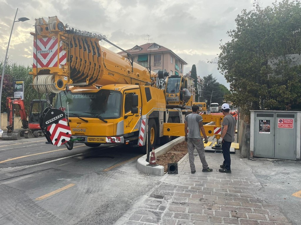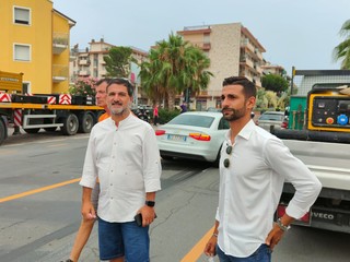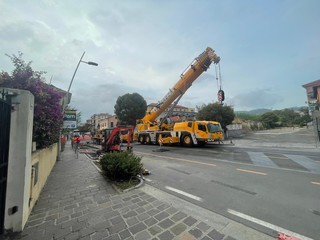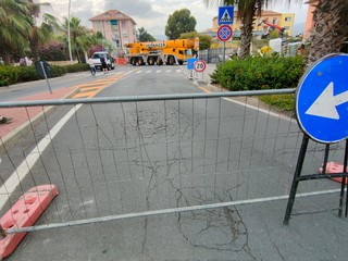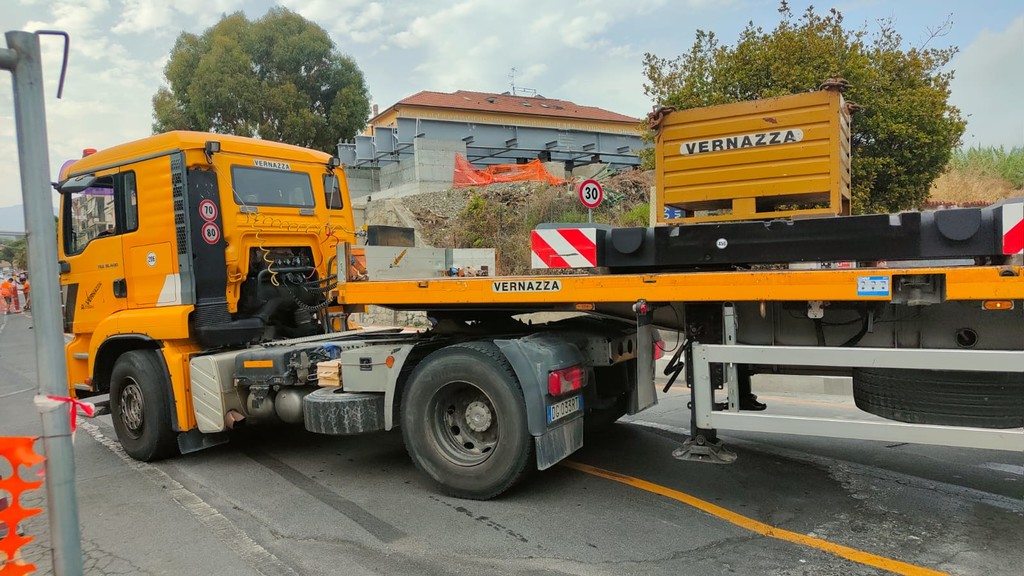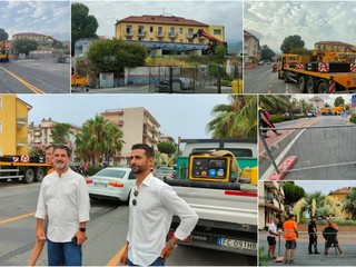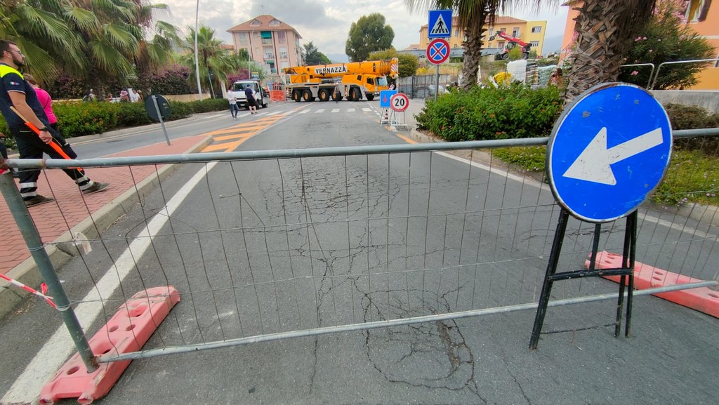 Iniziate a San Bartolomeo al Mare le operazioni di posa del nuovo ponte di via Roma (foto e video)