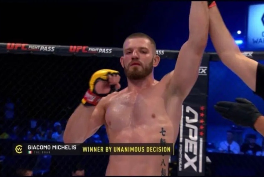 Nella lunghezza delle tre riprese da 5 minuti, Michelis è riuscito a dominare il francese sia nella fase di striking, riuscendo a chiudere la distanza e proiettandolo al tappeto, sia nella fase lottatoria dove la pressione dell’imperiese ha schiacciato a terra l’avversario mettendolo in difficoltà e costringendolo quasi alla resa.