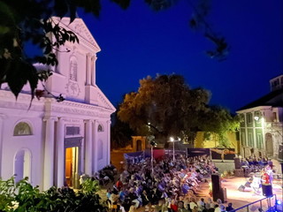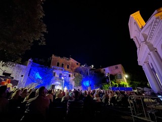 La band italiana ha coinvolto gli spettatori che con il battito di mani si sono trasformati in percussionisti, entrando a far parte di uno spettacolo davvero magico tra le luci di piazza Rovere.
