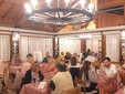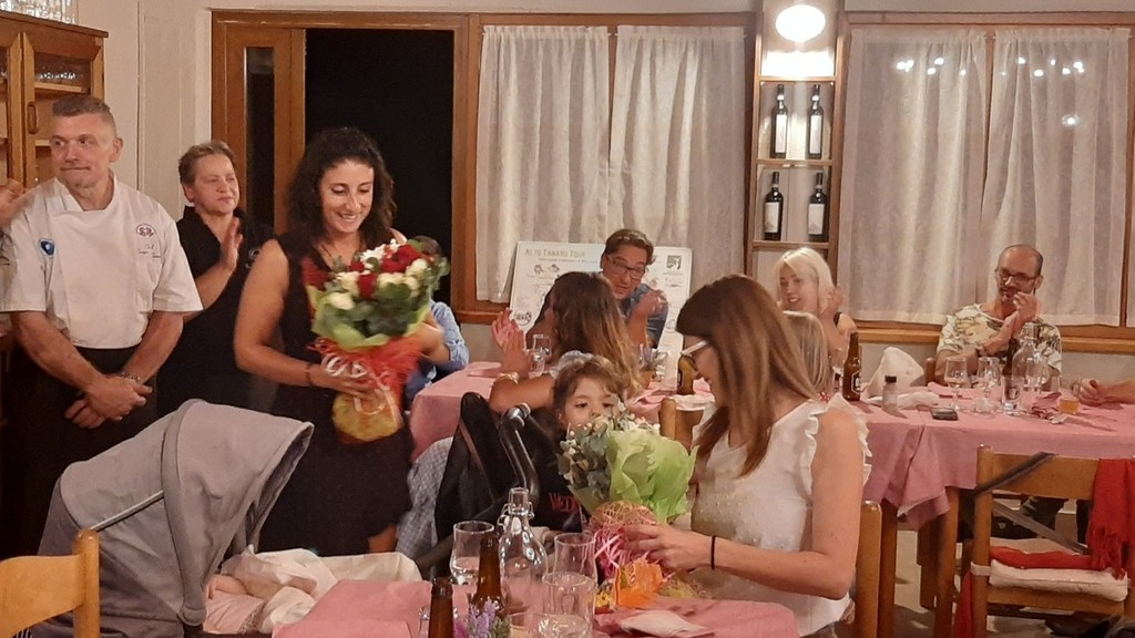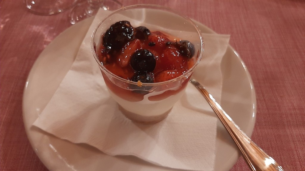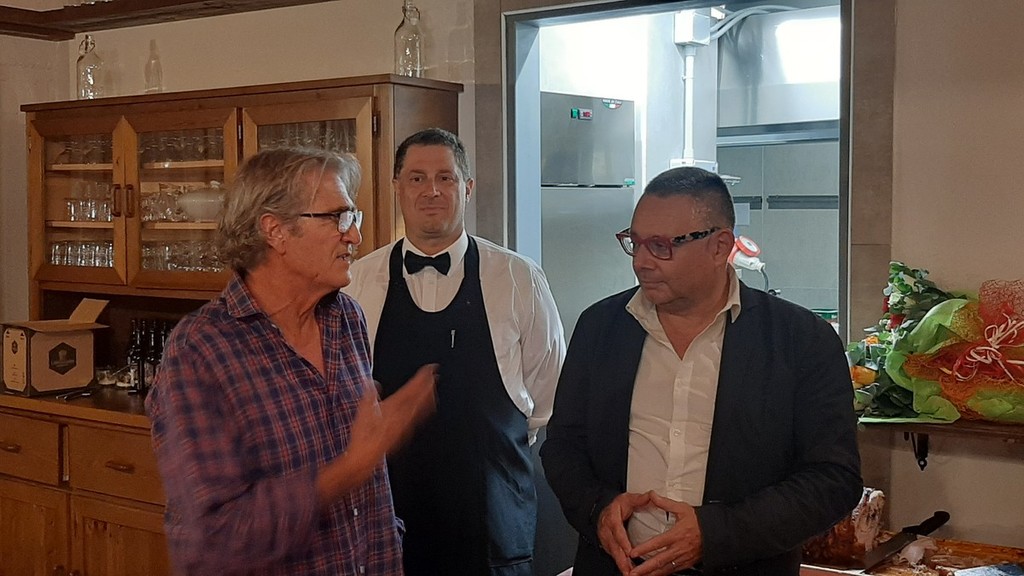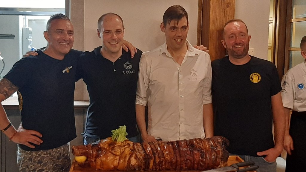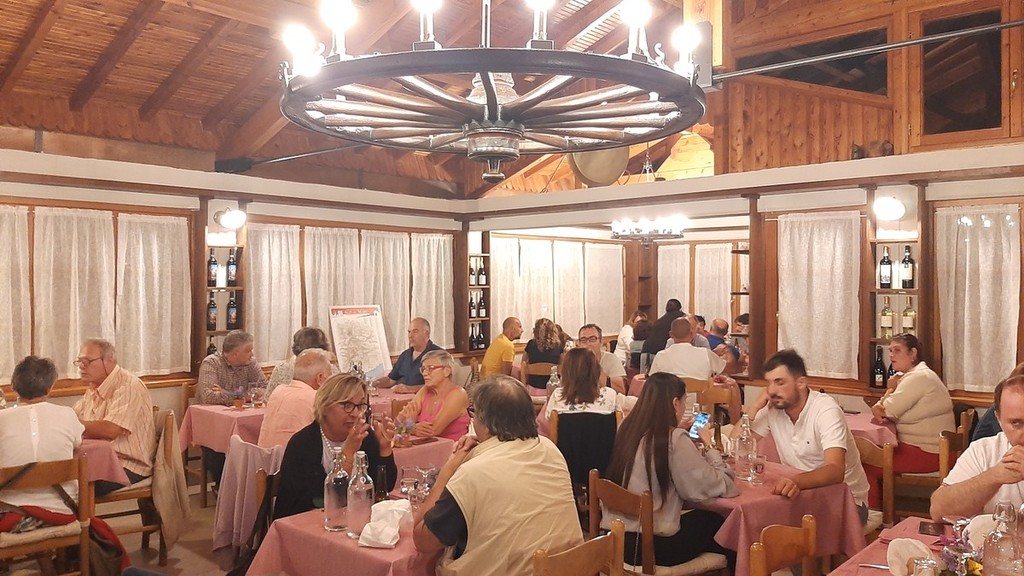Il menù prevedeva per aperitivo frittelle di melanzane e frittata di spinaci, come antipasto grissini caserecci con lardo, ricotta alle erbe, insalata e filo di olio evo, il “Risotto del Col di Nava”, invenzione molto apprezzata dello chef Sergio Tamarri, per secondo la porchetta con cipolle caramellate all’aceto di mele e toma di Ormea e, infine, la cheescake alla frutta.