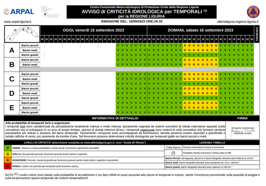Maltempo in arrivo sulla nostra provincia: emanata dall'Arpal l'allerta gialla per temporali