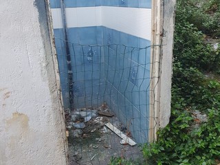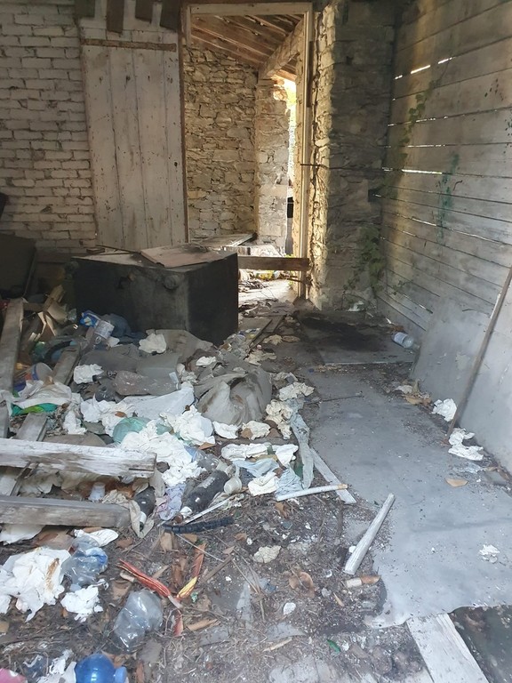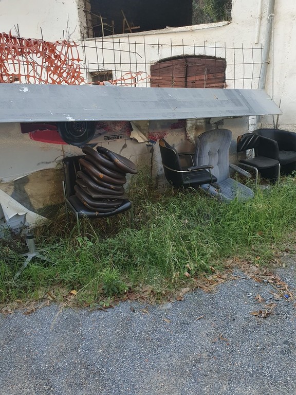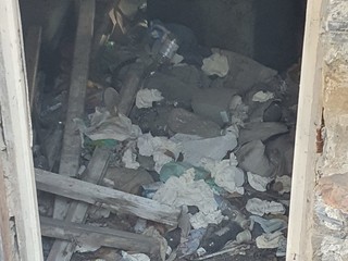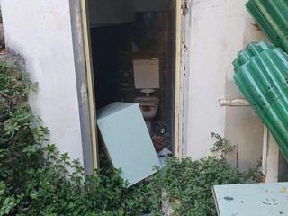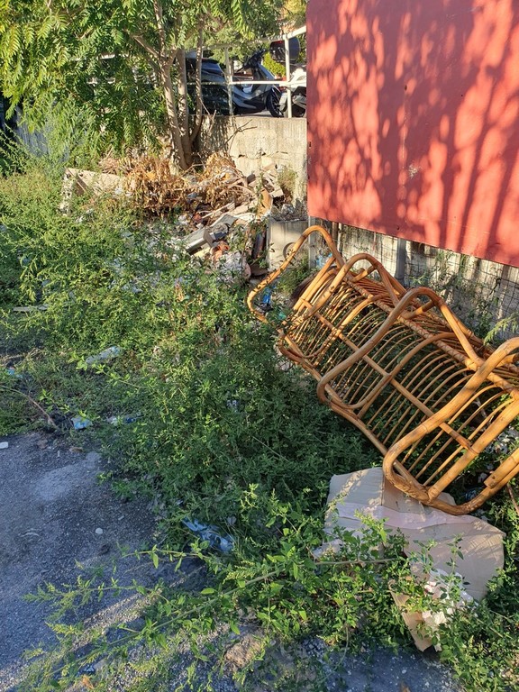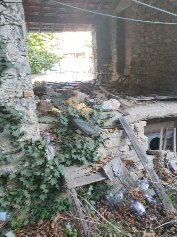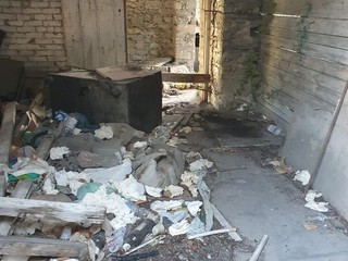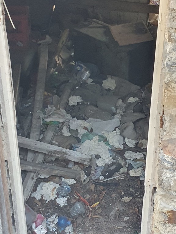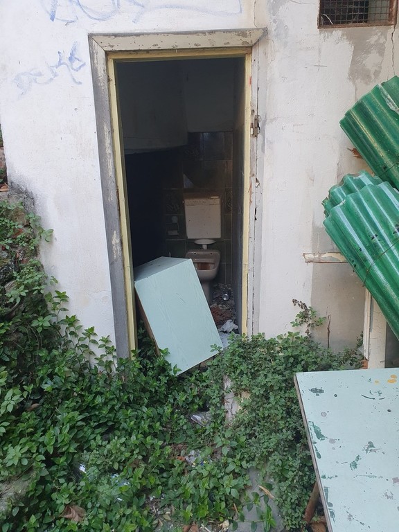 "Sotto al locale designato per la raccolta dei materiali vi sono degli ambienti chiusi da un portone in ferro, una casa fatiscente utilizzata come bagni pubblici e una discarica contenente sedie d’ufficio rotte e banchi di scuola anch’essi rotti".