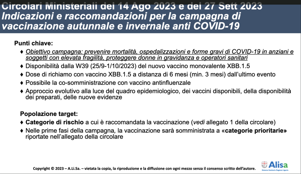“La Liguria – afferma il presidente di Regione Giovanni Toti – è pronta a partire con la campagna vaccinale che parte delle categorie a rischio, quella che è più importante mettere in sicurezza dalle forme più gravi del Covid. Dobbiamo anche prendere atto che siamo di fronte a un virus che non è più quello dei primi due anni. E questo è proprio grazie ai vaccini che hanno messo in sicurezza gran parte della popolazione. Il nostro appello è quello di vaccinarsi e lo rivolgiamo soprattutto ad anziani e fragili che sono le persone più a rischio e dobbiamo proteggere dalle forme più gravi legate alla trasmissione del Covid”.