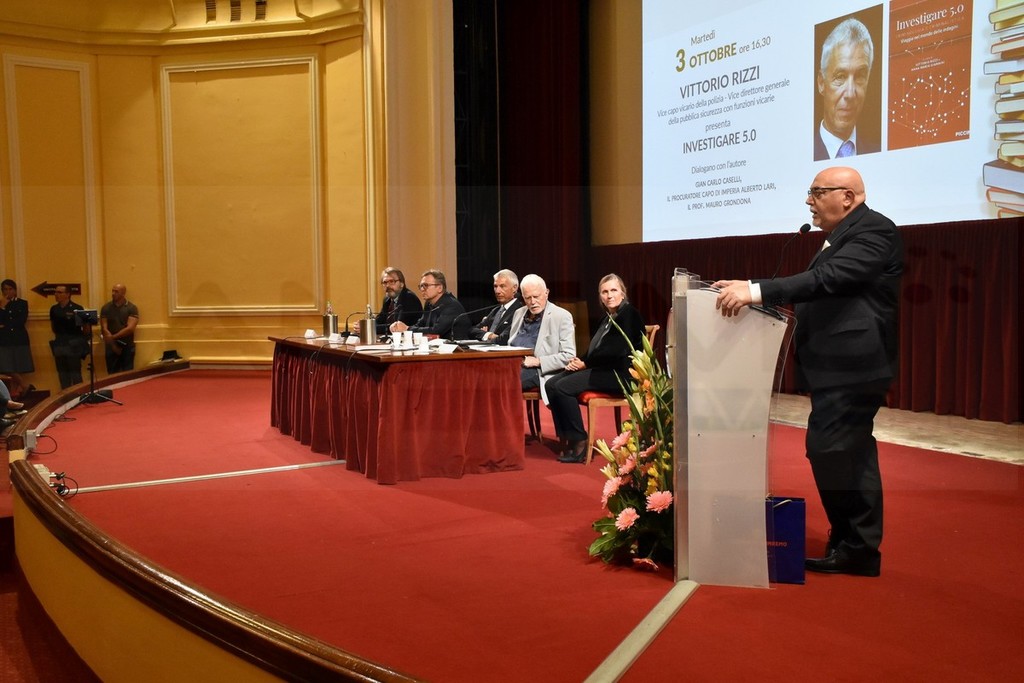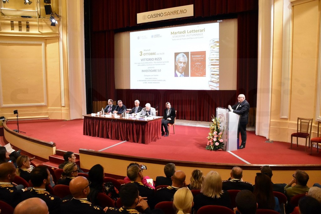 Pubblico delle grandi occasioni, presenza delle massime autorità provinciali e regionali, tanti agenti di Polizia e moltissimi giovani, questo pomeriggio al Teatro del Casinò di Sanremo per l’appuntamento con Vittorio Rizzi, vice Capo Vicario della Polizia, Vice Direttore Generale della Pubblica Sicurezza con Funzioni Vicarie che ha presentato ai ‘Martedì letterari’ il saggio ‘Investigare 5.0’, curato con la prof.ssa Anna Maria Giannini.