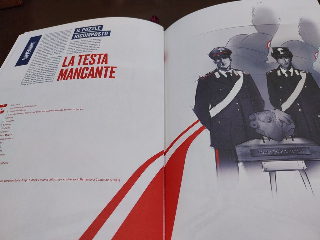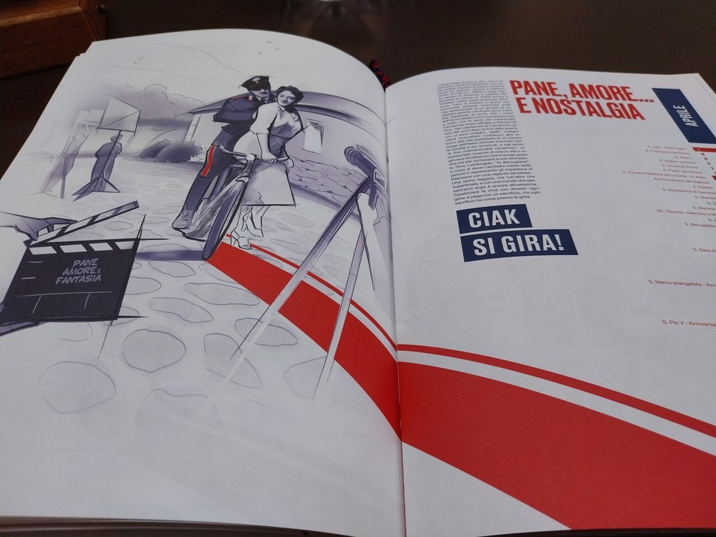 Tale opera editoriale, in apertura, racconta una storia redatta da personale dell’Arma con il titolo “Il Carabiniere in bicicletta”. È ambientata agli inizi del ‘900 e narra di un maresciallo dell’Arma che svolgeva il suo servizio per la comunità a bordo di una bicicletta garantendo, con gentilezza e garbo, rassicurazione sociale e compagnia agli abitanti del piccolo paesino.