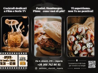 Il Winston Churchill, il cocktail bar dove si possono gustare panini, hamburger e pinse, rispecchia la passione del titolare Silvio Pugi per la miscelazione. Una parete del locale è dedicata a laboratorio dove Pugi crea drink unici tutti dedicati a film e serie tv con l’obiettivo di “far star bene i clienti”.