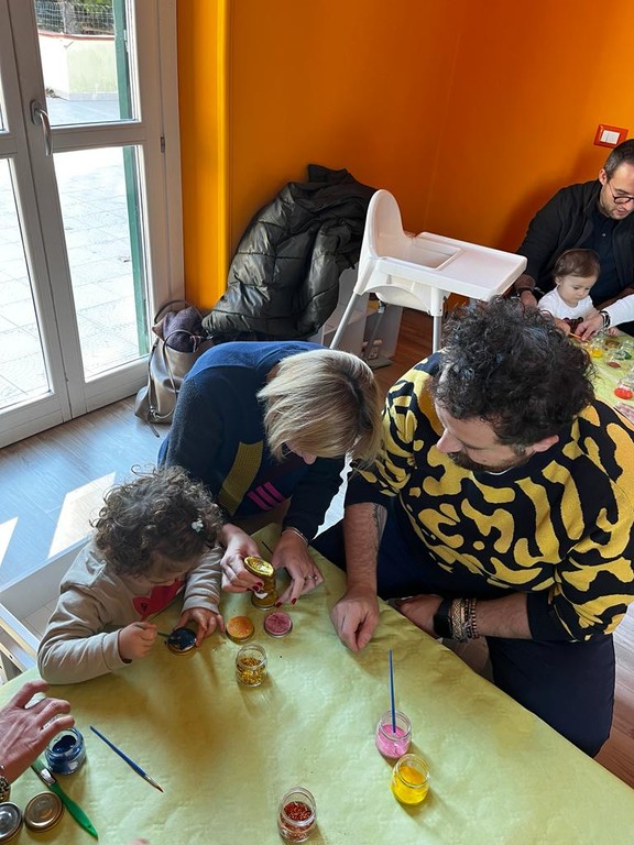L'equipe educativa ha organizzato per loro un momento creativo e una volta fornito tutto il materiale necessario, hanno così realizzando dei piccoli addobbi natalizi, nati dal riciclo di tappi di metallo, recuperati dai vasetti degli omogenizzati: con pittura e coloratissimi brillantini, hanno personalizzato e impreziosito ogni tappo. Al termine del laboratorio creativo grandi e piccini sono stati allietati da una dolce merenda.
