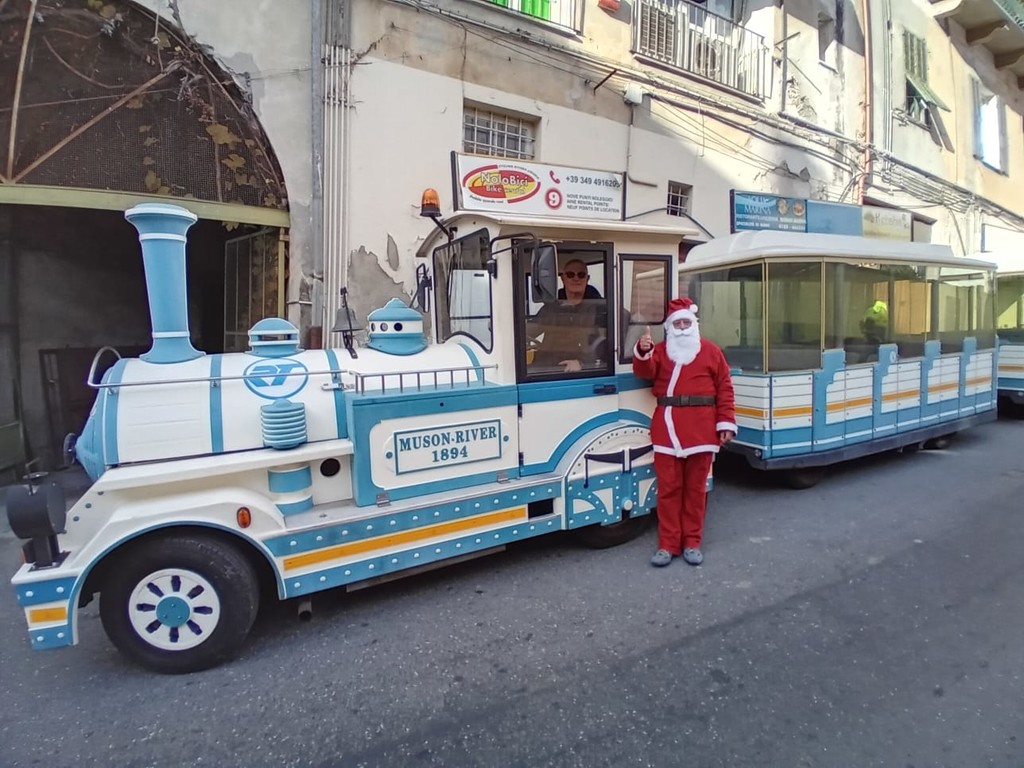 Babbo Natale è arrivato con il trenino canterino per la manifestazione “Un Natale da fiaba a Pontedassio”.