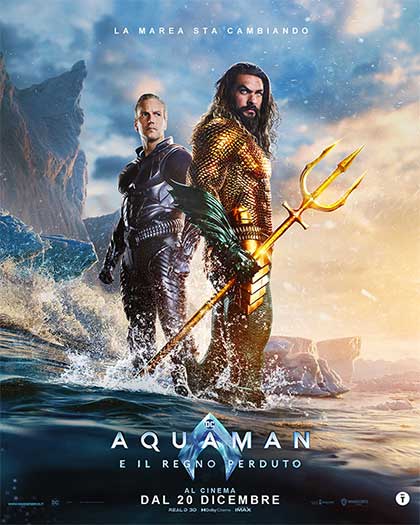 - AQUAMAN E IL REGNO PERDUTO – ore 16.00 – di James Wan - con Jason Momoa, Patrick Wilson, Amber Heard, Yahya Abdul-Mateen II, Nicole Kidman – Azione/Avventura/Fantasy - "Arthur Curry, alias Aquaman, ha messo su famiglia e suo figlio ancora in fasce già dimostra il potere di parlare con i pesci. Purtroppo il suo ‘lavoro’ di re di Atlantide non va altrettanto bene: un consiglio xenofobo e protezionista blocca le sue riforme e impedisce che il popolo subacqueo collabori con il mondo di superficie per fermare il riscaldamento globale. Il quale subisce una drastica accelerazione per mano dell'arcinemico di Aquaman: Black Manta. Questi, guidato dalle visioni di un sinistro tridente nero, ha iniziato a impiegare il leggendario Oricalco, riscaldando tanto i mari quanto le terre emerse...”