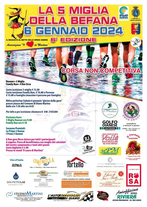 E' partito il countdown per l’annuale corsa benefica del 6 gennaio curata dalla Golfo Dianese Ultra Runners. L’iniziativa è volta a raccogliere contributi, anche tramite la pesca di beneficenza di magliette messe in palio da calciatori famosi, e il cui ricavato sarà poi da donare ai vari ospedali pediatrici di zona e all’associazione ‘Il Cuore di Martina’.
