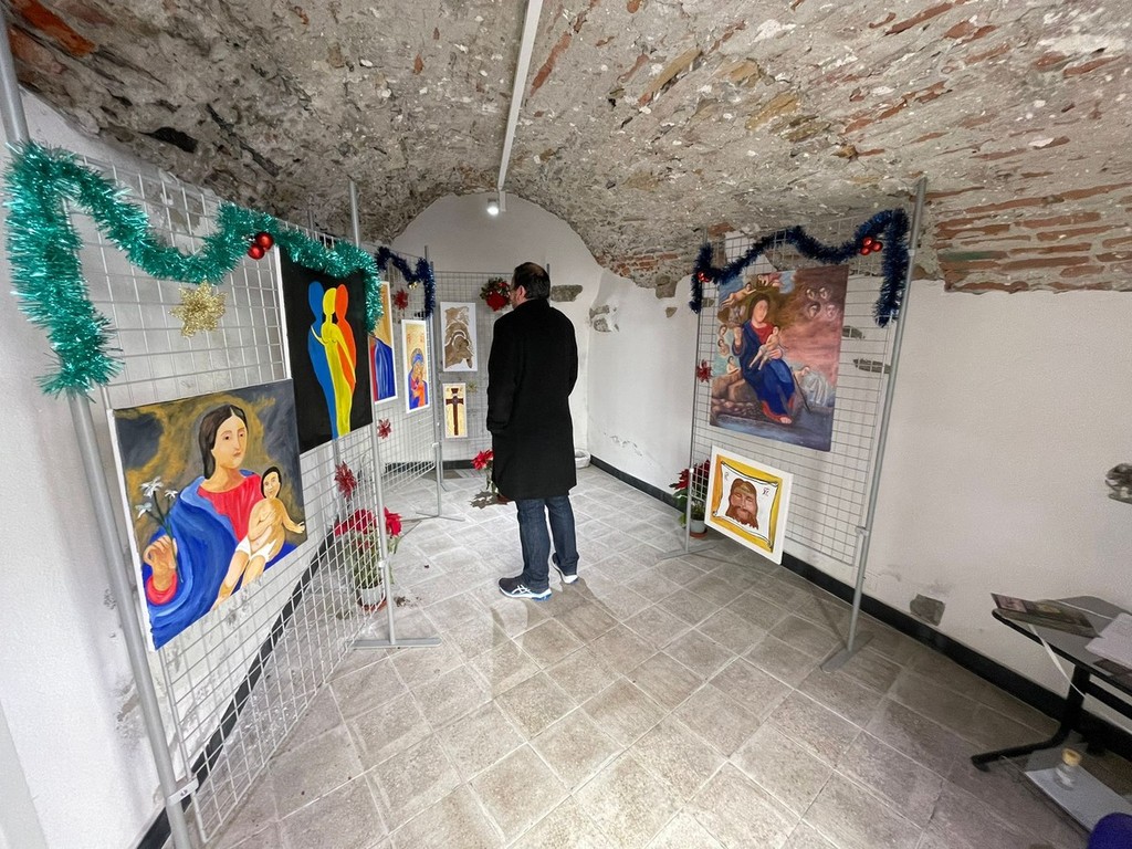 Nella sala espositiva ‘Carrugiu Dritu’ figurano sue opere singolari dipinte con il... caffè. Spiccano una Madonna, su tela ed altre rappresentazioni con motivi religiosi come una croce, la Trinità, in forma astratta, icone, tanto che l'esposizione è stata titolata ‘Arte ai confini del sacro’. La mostra è organizzata dall'associazione ‘I colori della Gioia’ in collaborazione con il comune.