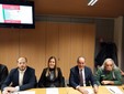 Relatori dell’incontro Davide Natale, segretario regionale, Enrico Ioculano consigliere regionale, Gian Gianbattista Poggi, ex direttore del settore infrastrutture per la Regione Liguria e il Comune di Genova, Manuela Giraudo, membro della direzione nazionale, Pietro Mannoni, membro della Segreteria Regionale con delega alle infrastrutture.