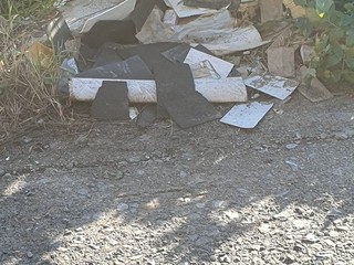 Parcheggi selvaggi, rifiuti abbandonati sul ciglio della strada e nel greto del torrente Impero, manto stradale rovinato e segnaletica orizzontale non più visibile.