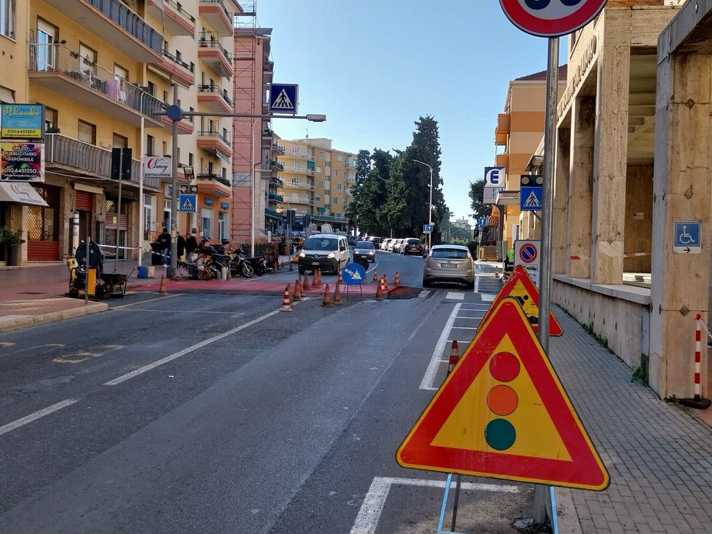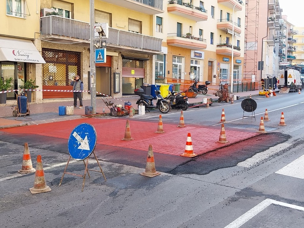 Tre nuovi attraversamenti pedonali rialzati a Imperia: uno in fase di realizzazione in viale Matteotti davanti alla sede dell’Inail.