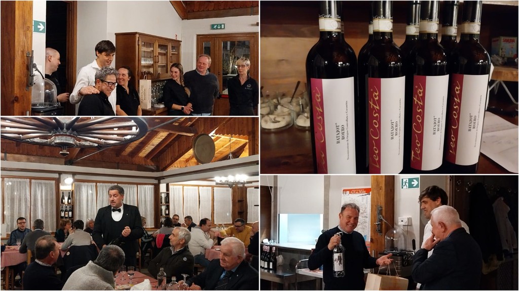 "Questa sera abbiamo assaggiato un Roero, che pochi conoscono, un cento per cento Nebbiolo della raccolta alla sinistra del Tanaro, un Nebbiolo elegante e con colori più brillanti rispetto al Nebbiolo d’Alba- spiega Ferruccio Aliberti, responsabile vendite dell’azienda Teo Costa- Il secondo vino era un Barbera passita, non è un vino dolce, ma con un appassimento in vigna, ottimo con le carni e i formaggi, un nuovo modo di bere questo vitigno Barbera nobile della parte contadina delle Langhe del Roero”.