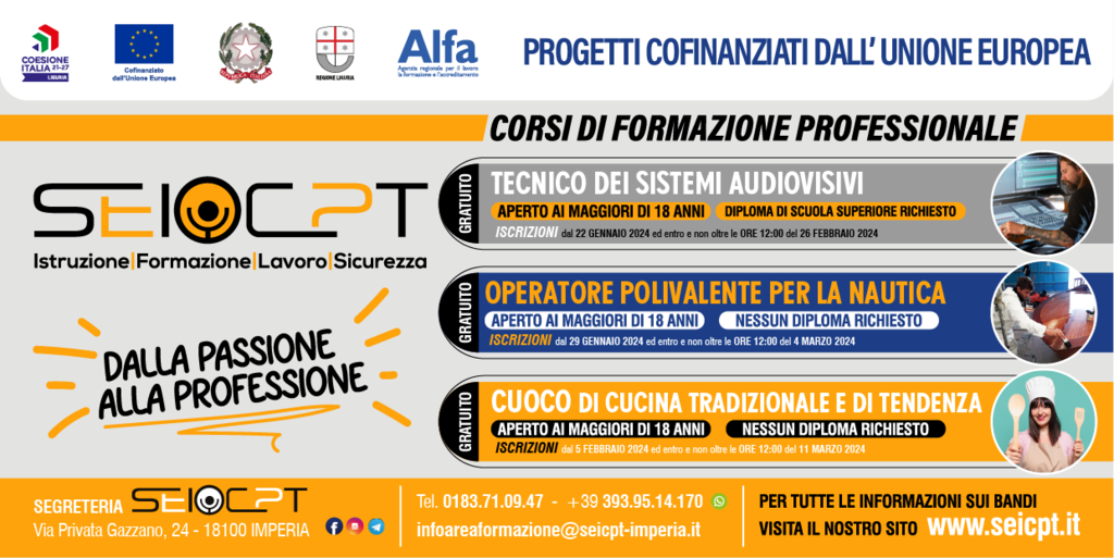 SEI CPT Imperia presenta tre nuovi corsi professionali, completamente gratuiti, per chi cerca di trasformare le proprie passioni in una carriera di successo.