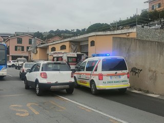 Imperia, supera un pullman in manovra: ventinovenne cade sull’asfalto in via Airenti (foto)