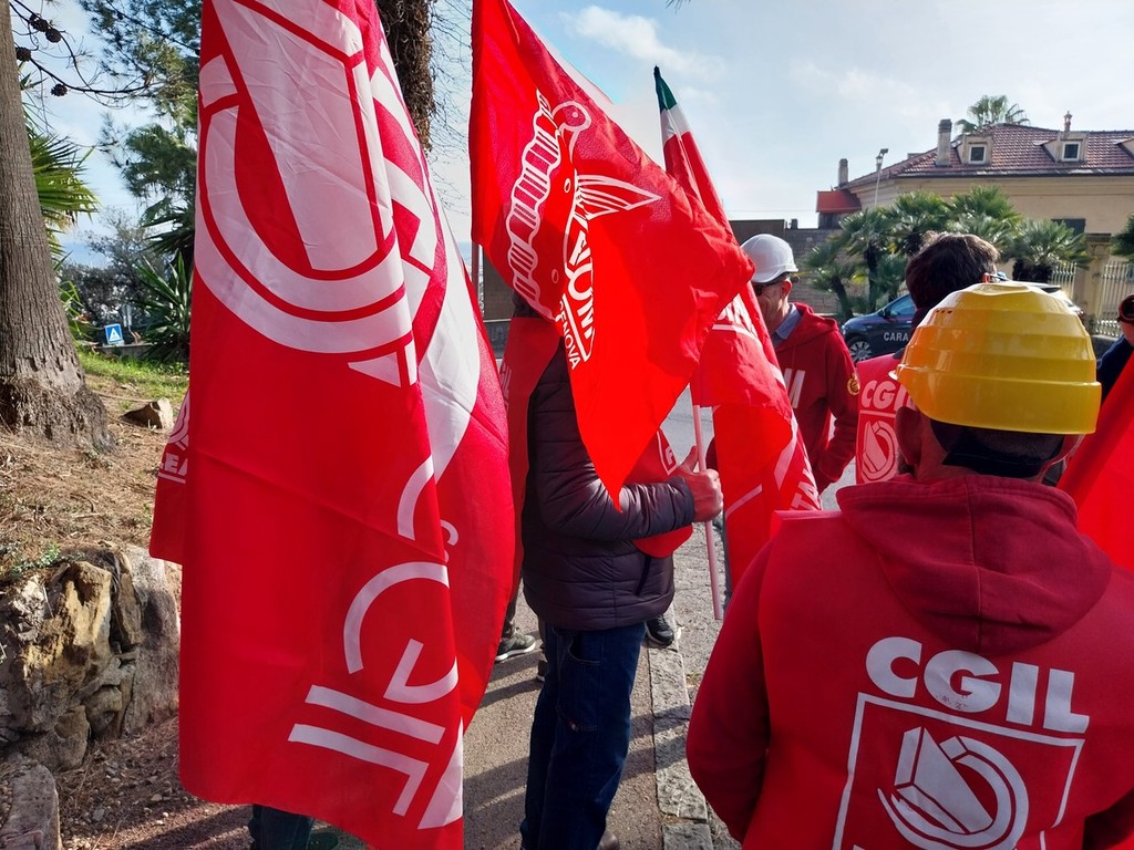 Anche a Imperia scioperano gli edili e i metalmeccanici e protestano davanti al palazzo della prefettura.