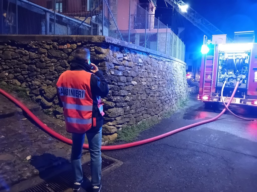 Fiamme domate dai vigili del fuoco, presenti i carabinieri di Nava