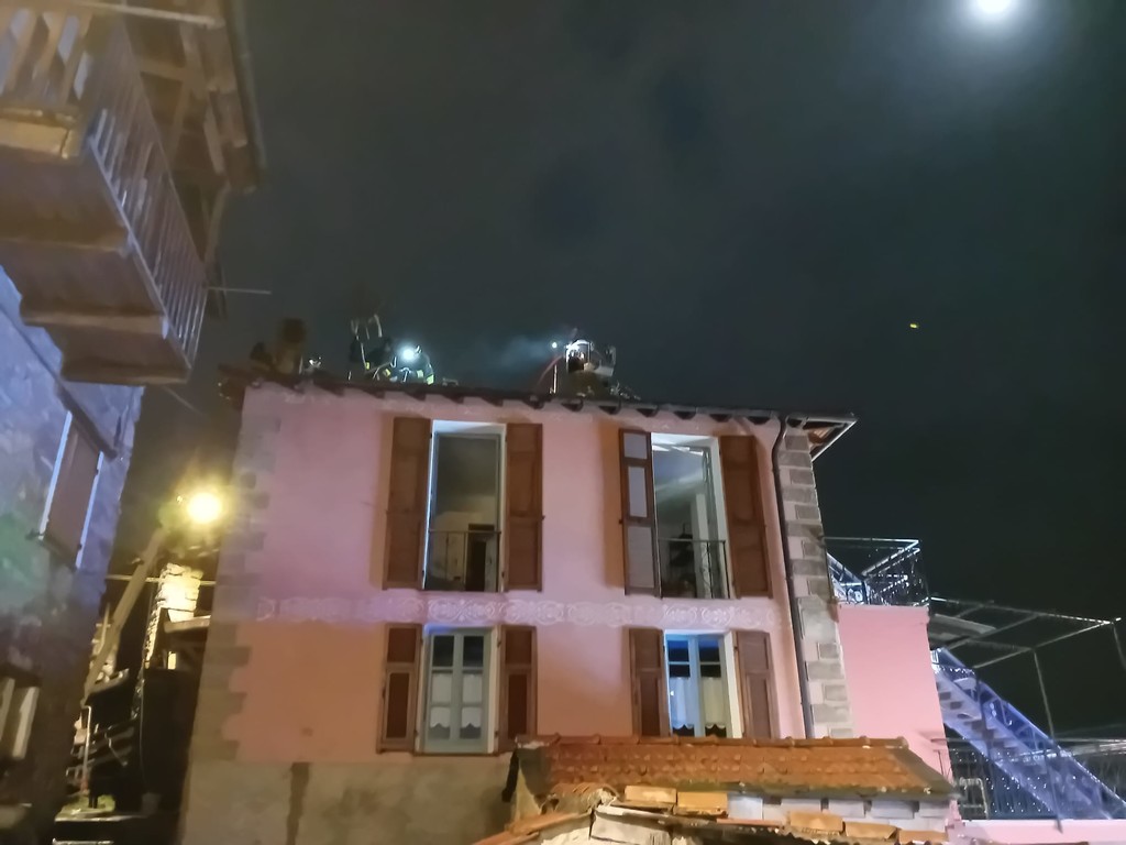Mendatica, tetto di un'abitazione in fiamme: l'incendio partito dalla canna fumaria (foto)