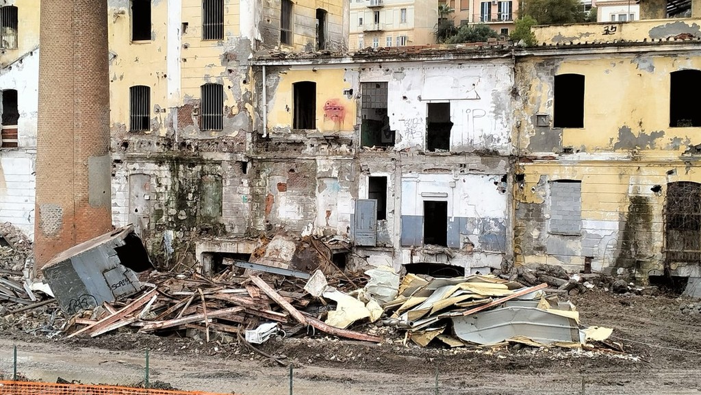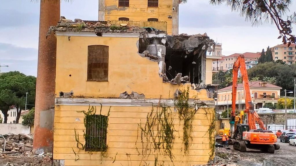 È in corso la demolizione dell’ex raffineria Sairo, al termine dell'intervento prenderanno il via i lavori di recupero del fabbricato principale.