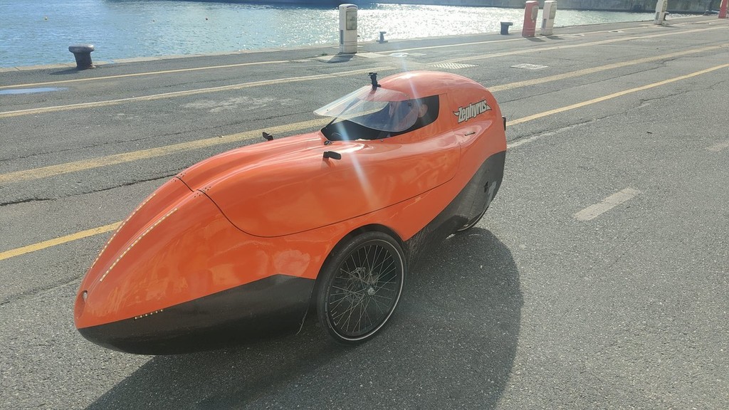 "Che cosa è Zephirus? Un velomobile che definirei a 'propulsione umana', con carenatura aerodinamica, per proteggersi anche da vento e dalle intemperie". Il cuoco varesotti spiega così la sua creatura costruita con amici dopo averne ammirato un prototipo in Danimarca.