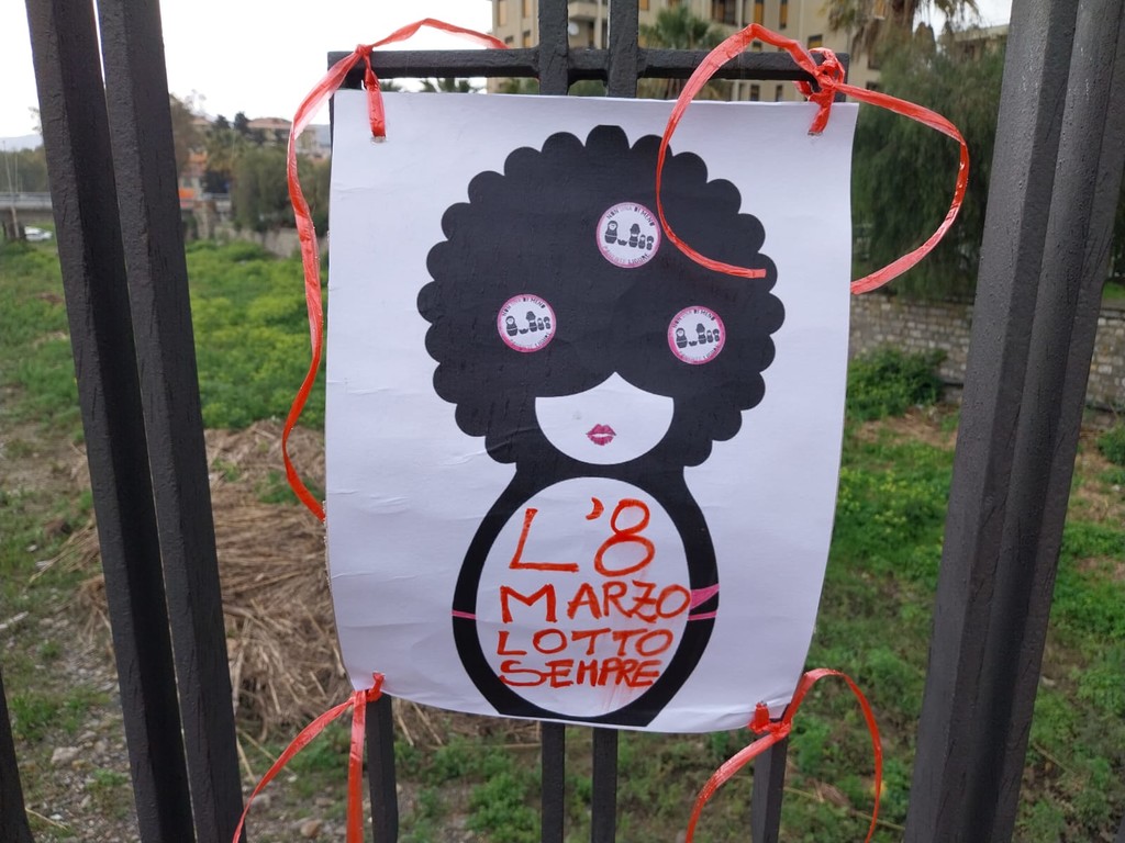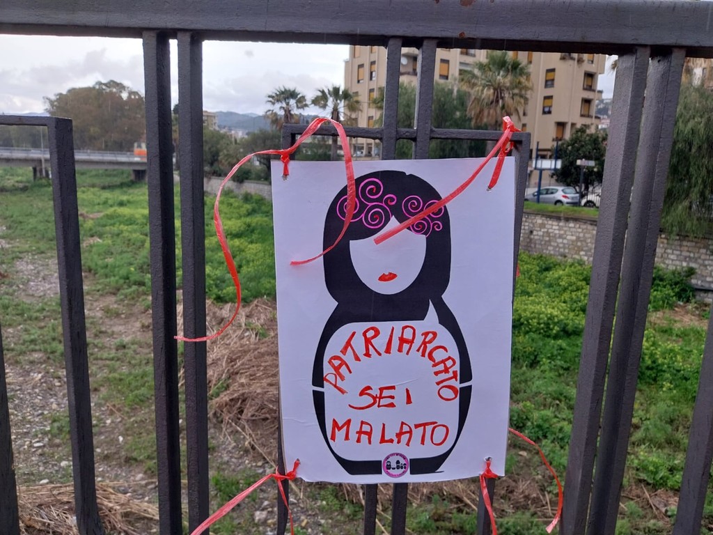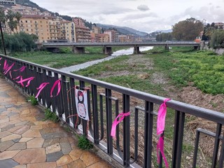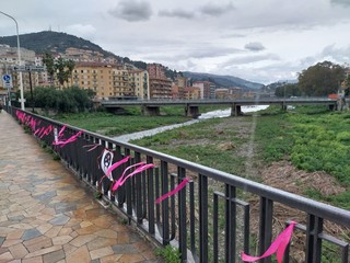Un'iniziativa delle attiviste del gruppo “Non una di meno Ponente Ligure” che hanno appeso alla ringhiera fiocchi rosa e volantini che recitano “Patriarcato sei malato” e “L’8 marzo lotto sempre”.