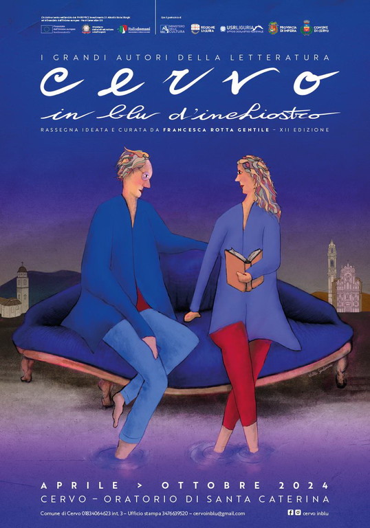 “Siamo felici e onorati – ha concluso Francesca Rotta Gentile - che il graphic designer fiorentino Walter Sardonini, quest’anno, per la prima volta, abbia pensato e ideato un’immagine per questa rassegna che così potrà avere finalmente un abito nuovo e tutto suo con un’immagine meravigliosa, di grande intensità. Sardonini, in un blu Picasso... di cielo e mare, ha raffigurato su un divano due personaggi che leggono, due anime, più che due corpi, due espressioni dell’interiorità, capelli inclusi. Un uomo e una donna che si guardano senza toccarsi. L’immagine trasmette intensità e una quasi simmetria con le Chiese di Cervo di sfondo e due tocchi rossi che colpiscono i nostri occhi insieme al divano che ha quasi forma di una bocca”.