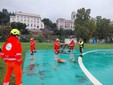 Mattinata di esercitazione all’eliporto di Imperia con il nucleo cinofili dei vigili del Fuoco che, insieme alla Croce Bianca e la protezione civile, hanno simulato le manovre di soccorso con l'elicottero.